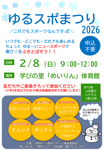 いつでも・どこでも・だれでも楽しめるちょっとゆるいニュースポーツで寒さをふきとばそう!!