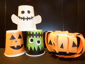 ハロウィングッズを作ってみよう。材料や見本を用意していますので、その場でどなたでも自由に作ることができます。家に持って帰ったり、館内に飾ることもできます。