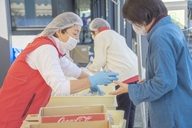 見学に来られた方には、市の備蓄している非常食を試供品としてお配りします。