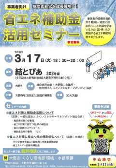 事業者向け省エネ補助金活用セミナーを開催します