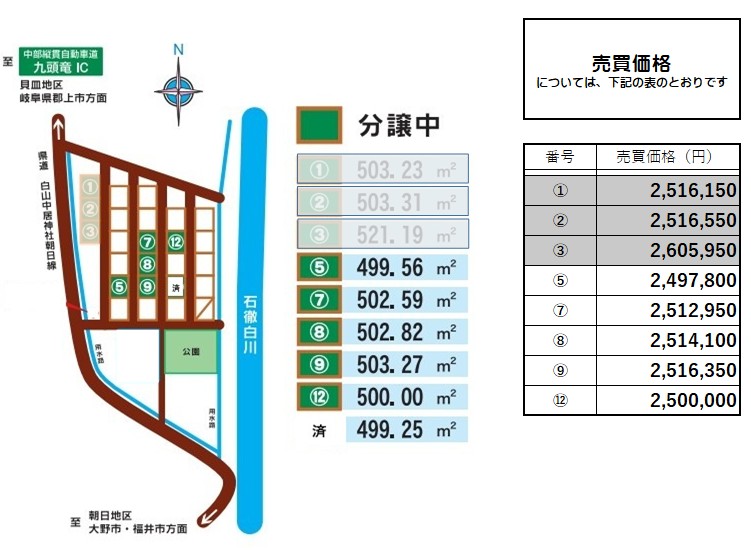 - 区画番号①番から③番は、現在一時使用中のため、販売を休止しています。