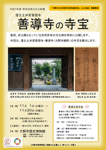 当企画展は、「大野市文化財保存活用地域計画」(文化庁認定)掲載事業です。