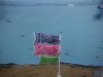 企画1 「こどもの日水槽」 こいのぼりのまわりをイトヨがスイスイ泳ぎます