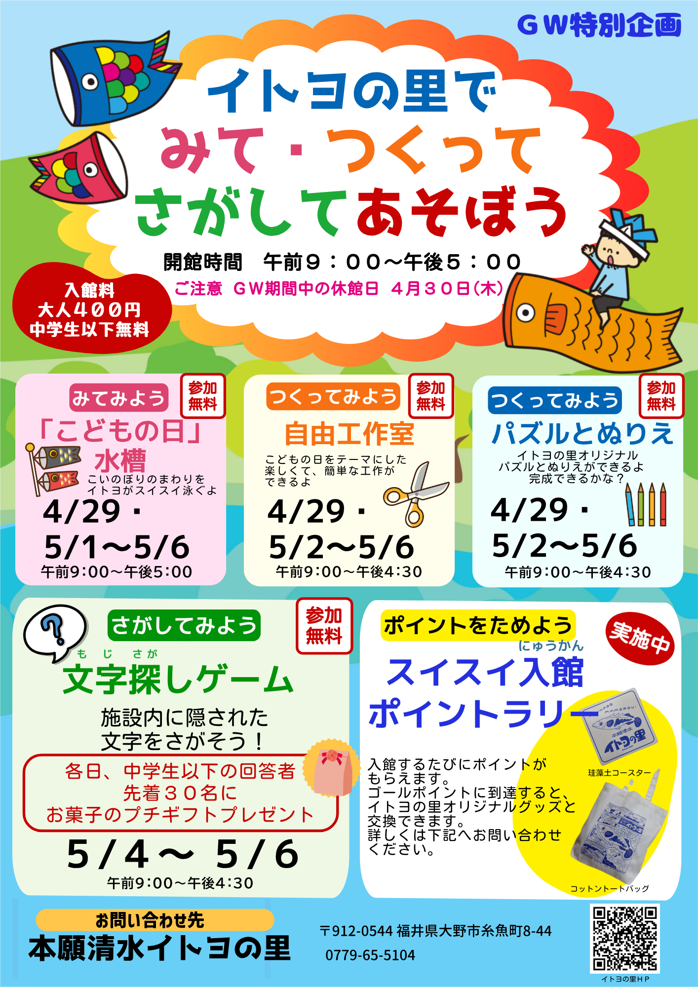 GW特別企画「イトヨの里でみて・つくって・さがしてあそぼう」を開催します
