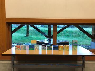 本願清水イトヨの里では、日頃から交流がある開成中学校3年生が美術教科で制作した作品を展示します。