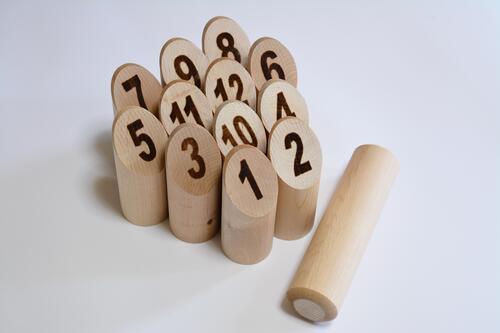 モルックとは、横長の木の棒を投げて、ボウリングのようにピンを倒すゲームです。