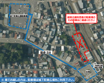 越前大野駅駐車場は、越美北線利用者の駐車場であるため駐車はご遠慮ください。