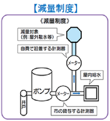 下水道に流れない水量を計測する減量用のメーターを設置していただくことで、その数値を料金計算から除外する制度です。
