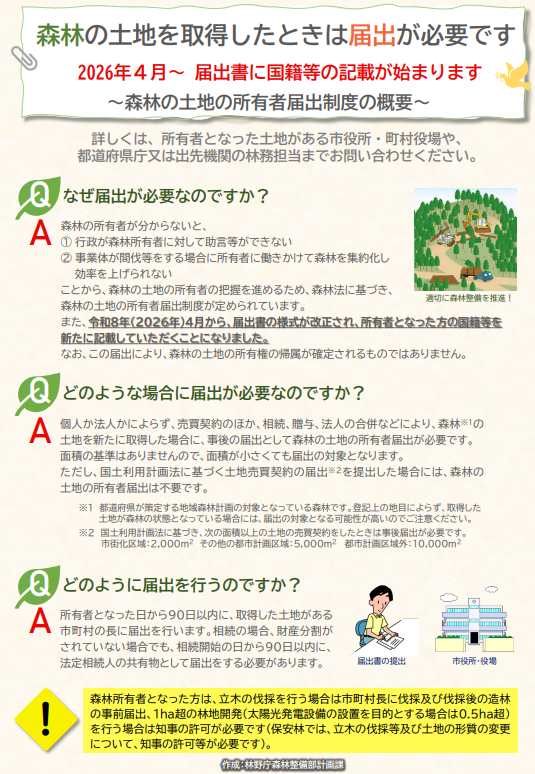- 森林の土地の所有者届出書(令和8年4月に様式が改正され、国籍を新たに記載していただくこととなりました)