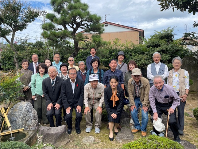 「古民家レストラン茶屋おがまち」の中庭で集合写真