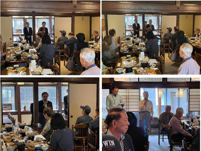 伊藤会長のお礼の挨拶に続き、長年に渡り関西大野会の活動に協力いただいている田中嘉隆さんの乾杯の発声により昼食会が始まり、里芋の煮っころがし、厚揚げの煮物、荒島ポークのしゃぶしゃぶ等の郷土料理に皆さん舌鼓を打たれ、美味しくいただきました。