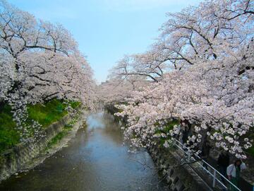 岩倉市内を流れる五条川沿いに約1400本の桜が一斉に開花し、美しいアーチを描きます。